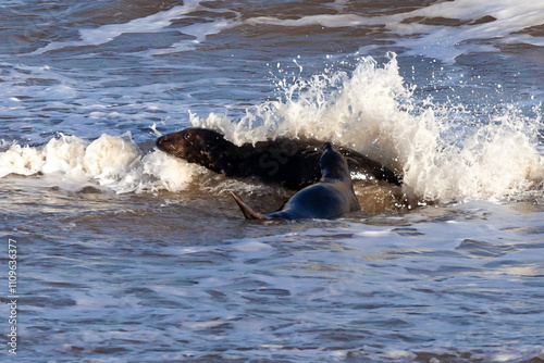 © mreco, Obraz premium Norfolk UK seals in the water playing