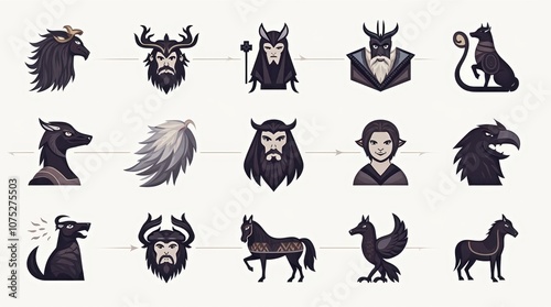 Fototapeta premium Norse Mythology Icons - Odin, Thor, Freya, Loki
