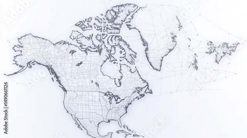 © yenart, Naklejka premium North America's Connectivity: A Network Visualization