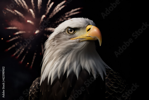 © yurakrasil, Fototapeta premium North American Bald Eagle on black background, AI