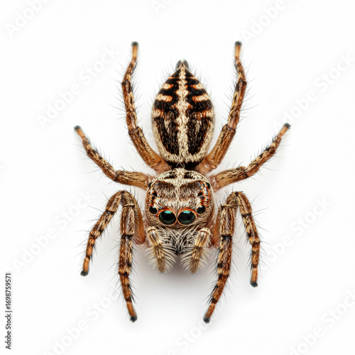 © OlehStock, Fototapeta premium North American common jumping spider on white background