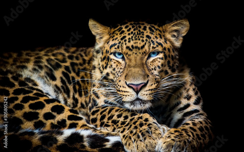 Obraz premium North China leopard Panthera pardus japonensis black backround Zoo