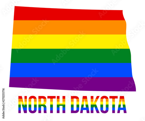 Obraz premium North Dakota State Map in LGBT Rainbow Flag Comprised Six Stripes With North...