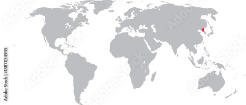 Obraz premium North Korea Highlighted on World Map Vector Design.