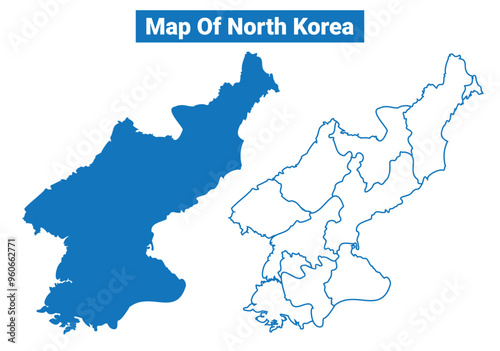 © Jayartiez, Fototapeta premium North Korea simple flat vector map outline style illustration set
