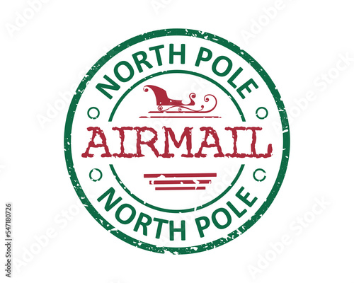 Obraz premium North Pole airmail Santa Clause main post office grunge rubber stamp design with white background