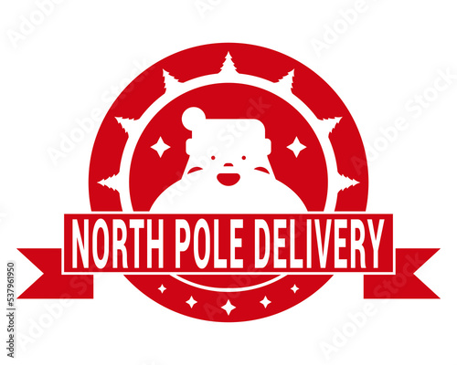 © PandyBoy, Obraz premium North Pole delivery. Xmas stamp design for a personalized gift bag from Santa Claus. Template for christmas handmade gifts. Vector illustration.