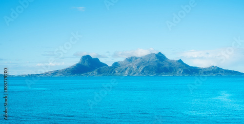Naklejka premium North, water or landscape of mountains with natural environment or arctic...