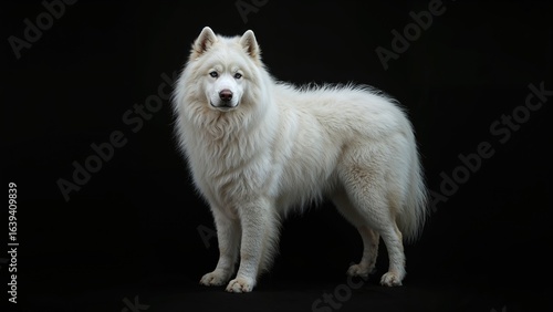 © TheWaterMeloonProjec, Obraz premium Northern breed dog posed against a black setting