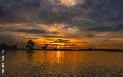 Naklejka premium Northern California Delta near Isleton, Ca. sunrise in cloudy sky