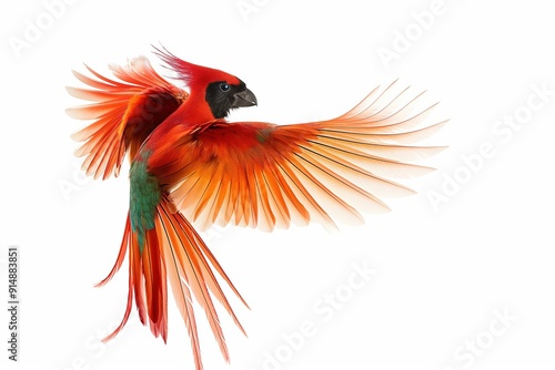 © EdvvinStudios, Obraz premium Northern cardinal bird flying showing its beautiful red wings