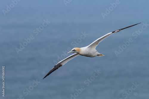 Obraz premium Northern Gannet, adults in flight, Bempton cliffs, England, United Kingdom.