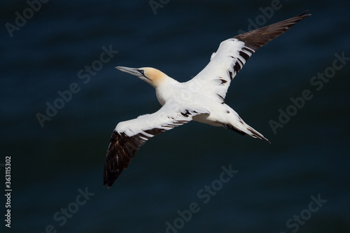 © jmh-photography, Obraz premium Northern Gannet flying by the cliffs of Bempton Cliffs, Flamborough Head, East Yorkshire, UK