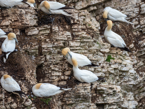 © Stephan Morris , Obraz premium Northern gannets nesting on cliff tops.