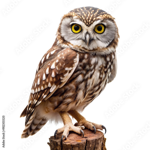© Working Moments, Fototapeta premium Northern Hawk Owl, Perched on a Log, Isolated on White Background, Northern Hawk Owl, Bird, Wildlife, Nature, Photography