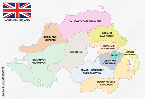 © lesniewski, Obraz premium Northern Ireland administrative and political map with flag