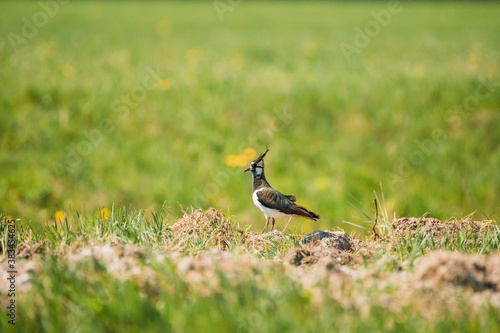 Naklejka premium Northern Lapwing Or Peewit In Summer Field. Wildlife Birds Of Belarus