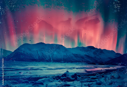 Naklejka premium Northern lights and mountains in the background