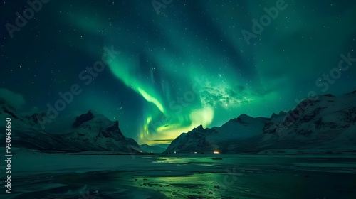 © Olivia, Naklejka premium Northern Lights (Aurora borealis) in the dark night sky