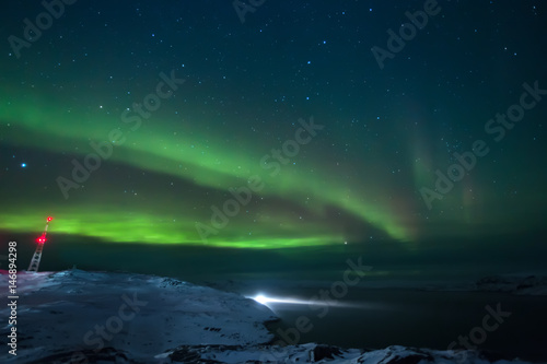 Fototapeta premium Northern lights. Aurora borealis nature landscape at night