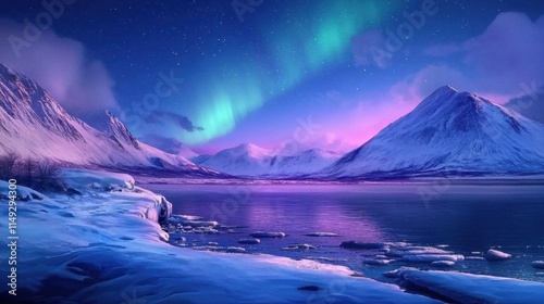 Naklejka premium Northern Lights Dance Above a Frozen Lake