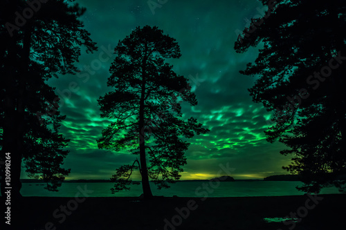 Fototapeta premium Northern lights dancing over calm lake in Sweden