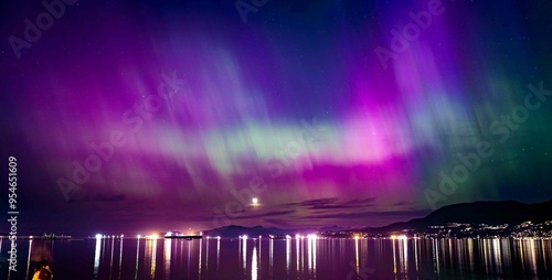 © Martin, Fototapeta premium Northern Lights Illuminating the Horizon Over Vancouver, Canada
