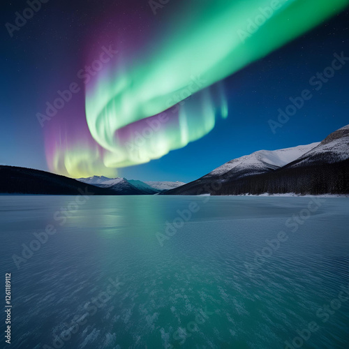 Fototapeta premium Northern Lights Over a Frozen Lake