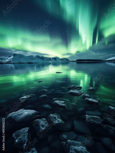 Naklejka premium Northern Lights Reflection on Lake