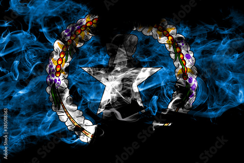 © Vlad, Fototapeta premium Northern Mariana Islands smoke flag isolated on black background