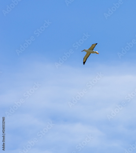 Fototapeta premium Northern royal albatross in flight, Taiaroa Head, Otago Peninsula, New Zealand.