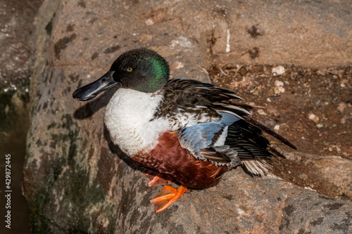 Obraz premium Northern Shoveler (Anas clypeata) drake in park