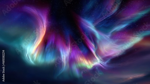 Fototapeta premium Northern sky filled with bright aurora waves