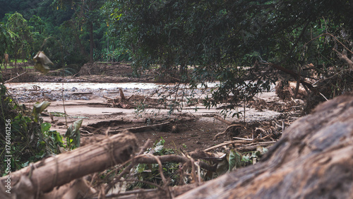 © Antonina, Fototapeta premium northern thailand floods land slips natural disaster homes damaged