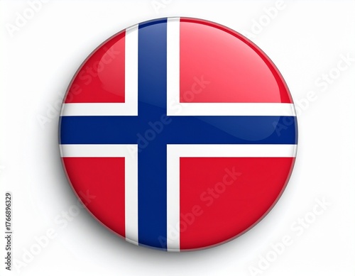 © Usman, Fototapeta premium Norway Flag Button with Nordic Cross on White Background