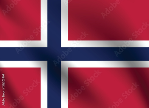 Fototapeta premium Norway flag official colors and proportion digital vector illustration. Pleated flag.