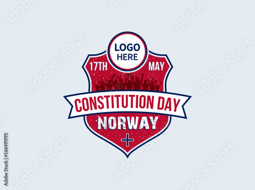 © Mehedimiad, Obraz premium Norway independence day. People celebrate and Logo presentation on the shield vector.
