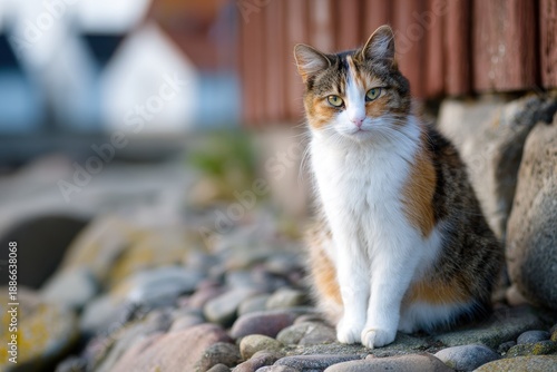 Fototapeta premium Norwegian cat observes while seated