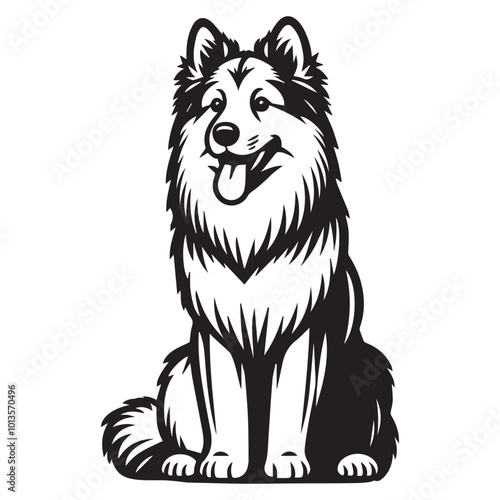 © Shineoxstock, Naklejka premium Norwegian Elkhound Dog Sitting Vector illustration in black and white