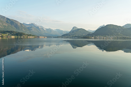 Obraz premium Norwegian fjords sea mountain landscape view, Norway