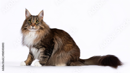 Fototapeta premium Norwegian Forest Cat sitting on white background.