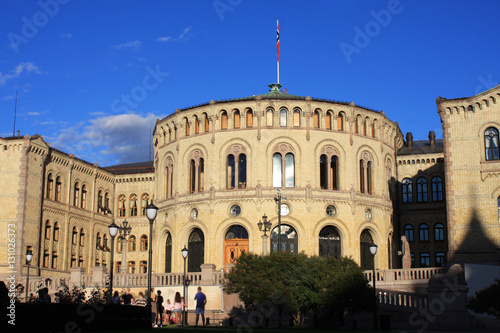 © Miroslav110, Fototapeta premium Norwegian parliament Storting Oslo in central Oslo, Norway
