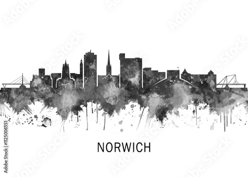 Fototapeta premium Norwich England Skyline BW, abstract painting travel illustration urban art...
