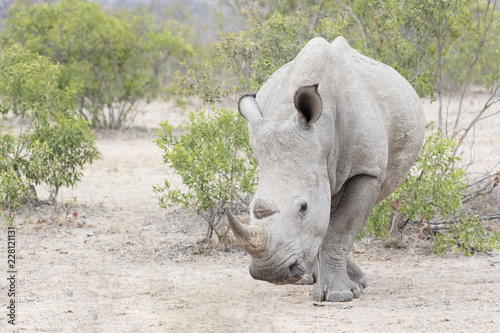© andreanita, Fototapeta premium Nosorożec biały (Ceratotherium simun), patrząc na kamery, Park Narodowy Krugera, RPA