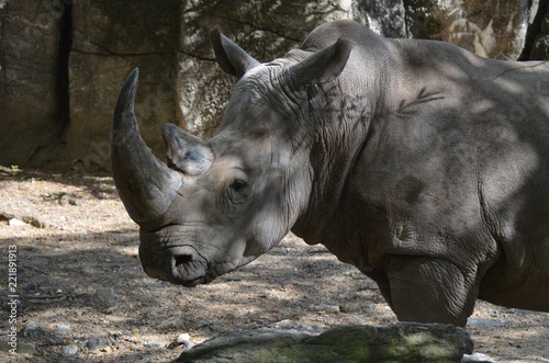 Naklejka premium Nosorożec stojący w cieniu w letni dzień