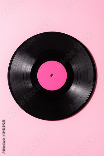 © Digital Sensei, Fototapeta premium Nostalgic black vinyl record isolated on a pink backdrop
