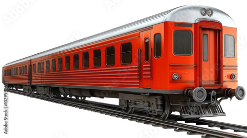 © Jean Isard, Fototapeta premium Nostalgic orange train wagons on white backdrop