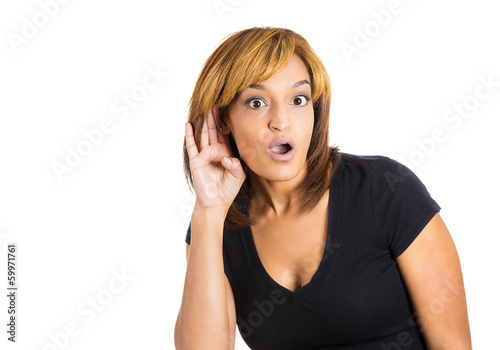 Fototapeta premium Nosy woman secretly listening to someones conversation