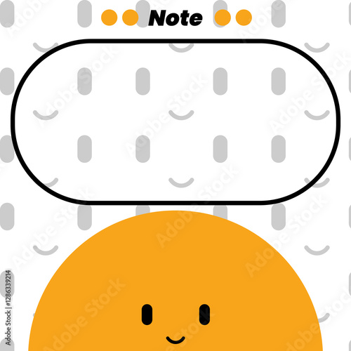 © Thitinan, Obraz premium Note design features a cheerful, smiling orange character at the bottom, surrounded by a light, patterned background of gray smiley faces.
