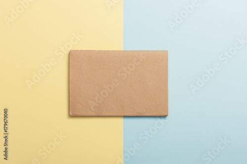 Fototapeta premium note on the color(yellow, blue) paper background.